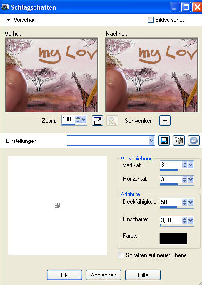 Effekte - 3D-Effekte - Schlagschatten mit diesen Einstellungen: