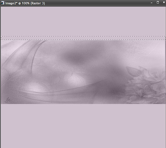 Lege eine neue Rasterebene an. Kopiere den Hintergrund "JHanna_60 bground.jpg" oder Dein eigenes Hintergrundbild und füge es in eine Auswahl ein. Hebe die Auswahl auf. Stelle den Mischmodus in der Ebenenpalette auf "Helligkeit (Vorversion)" (in älteren Versionen heißt es Helligkeit (L)). 4. Ziehe nun mit Deinem Auswahlwerkzeug "Rechteck" einen schmalen Streifen oberhalb des eingefügten Hintergrundbildes auf: