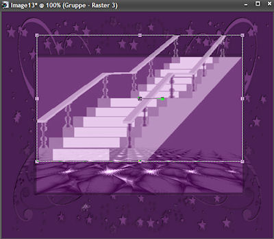 Ebenen - Einbinden - Gruppe zusammenfassen. 7. Schiebe Dir mit dem Objektauswahlwerkzeug (Rasterverformungswerkzeug) Deine Maske so zurecht, wie Du auf meinem Screen sehen kannst:
