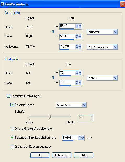 Dieses Tutorial habe ich selbst entworfen und es unterliegt meinem Copyright. Das Material stammt aus Tauschgruppen und das Copyrigt liegt beim jeweiligen Künstler. Ich habe das Tutorial mit Paint Shop Pro X2 geschrieben, es läßt sich aber auch mit allen anderen Versionen problemlos nachbasteln. Du benötigst: Paint Shop Pro Tuben: 1 Frauentube 2 Decotuben Mein Material kannst Du Dir hier herunterladen. Filter: Neology - Transparent Pizza Graphics Plus - Cross Shadow Hast Du alles zusammen? Dann lass uns beginnen. 1. Öffne Dir ein neues transparentes Arbeitsblatt in 600 x 550 Pixel Größe. 2. Suche Dir aus Deiner Haupttube eine schöne Vordergrundfarbe (meine ist #a34811) und eine dunklere Hintergrundfarbe (meine ist #4f7370). 3. Fülle Dein Blatt mit der Hintergrundfarbe. 4. Öffne und kopiere das Tube "woman041_sandra_novembre07.psp" oder Dein eigenes Tube und füge es als neue Ebene auf Deinem Blatt ein. Ändere die Größe wie folgt: