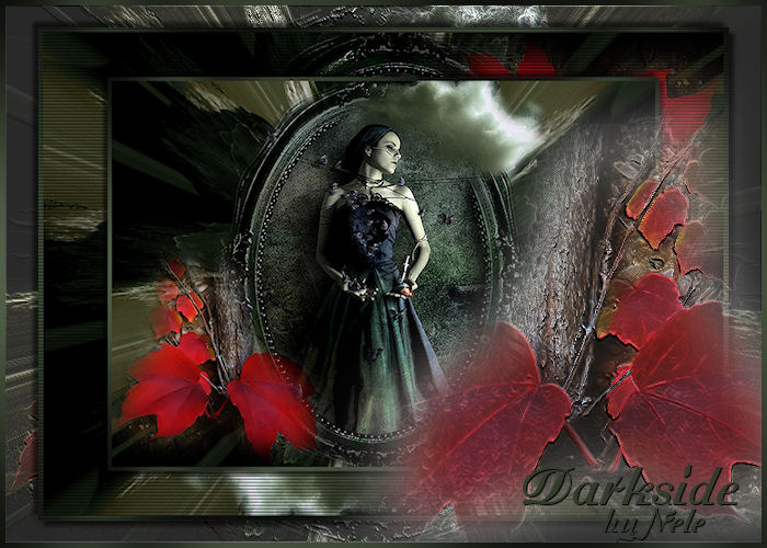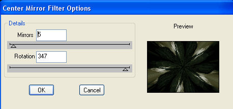 Dieses Tutorial habe ich selbst entworfen und es unterliegt meinem Copyright. Das Material stammt aus Tauschgruppen und das Copyright liegt beim jeweiligen Künstler. Ich habe das Tutorial mit Paint Shop Pro X2 geschrieben, es läßt sich aber mit allen anderen PSP-Versionen problemlos nachbasteln. Du benötigst: Paint Shop Pro Tuben: 1 Hintergrundbild 1 Fantasy- oder Gothictube 1 Blätter- oder Blumentube Mein Material kannst Du Dir hier herunmterladen. Filter: DSB Flux - Center Mirror Graphics Plus - Cross Shadow FM Tile Tools - Blend Emboss Kang 4 - Emboss 3 - Krikle Hast Du alles zusammen? Dann lass uns beginnen! 1. Öffne Dir ein neues transparentes Arbeitsblatt in 700 x 500 Pixeln Größe. 2. Suche Dir aus Deinen Tuben eine nicht zu helle Vordergrundfarbe (meine ist #333c2d) und eine dunklere Hintergrundfarbe (meine ist #172416). Fülle Dein Blatt mit der Hintergrundfarbe. 3. Lege eine neue Rasterebene an. Auswahl - Alles auswählen Kopiere das Hintergrundbild "SK BKG 17E.jpg" oder Dein eigenes Hintergrundbild und füge es in eine Auswahl ein. Hebe die Auswahl auf und setze den Mischmodus dieser Ebene auf "Hartes Licht". 4. Wende nun den Filter DSB Flux - Center Mirror mit diesen Einstellungen an:
