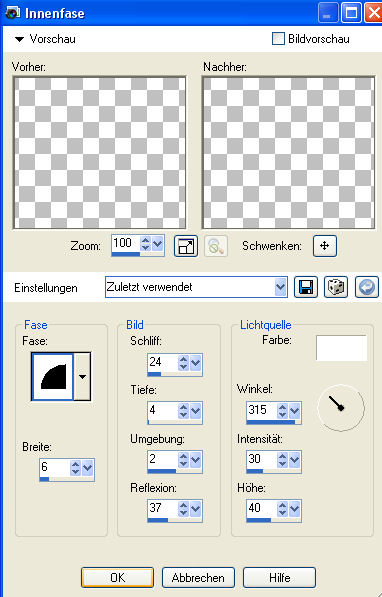 Effekte - 3D-Effekte - Innenfase mit diesen Einstellungen: