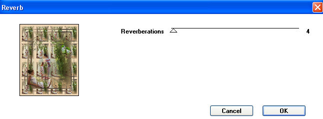 Hebe die Auswahl auf. 6. Füge Deinem Bild einen 5 Pixel breiten symmetrischen Rand in einer Farbe hinzu die nicht in Deinem Bild vorkommt. Markiere den Rand mit dem Zauberstab und fülle die Auswahl mit Deinem Farbverlauf. Wende den Filter Graphics Plus - Cross Shadow mit den Standarteinstellungen an (übernimm die Werte so, wie sie eingestellt sind). Effekte - 3D-Effekte - Innenfase und übernimm hier die Einstellungen. Hebe die Auswahl auf. 7. Füge nun einen 35 Pixel breiten symmetrishen Rand in Deiner Vordergrundfarbe hinzu. Markiere den Rand mit dem Zauberstab. Wende den Filter Factory Gallery H - Raverberations mit diesen Einstellungen an: