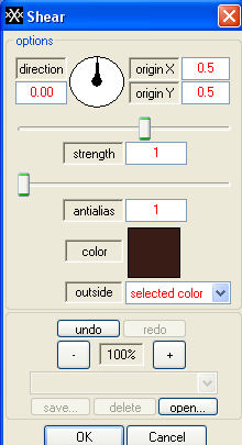 Laßt die Auswahl bestehen. 7. Wendet nun den Filter Dragonfly - Shear mit folgenden Einstellungen an: