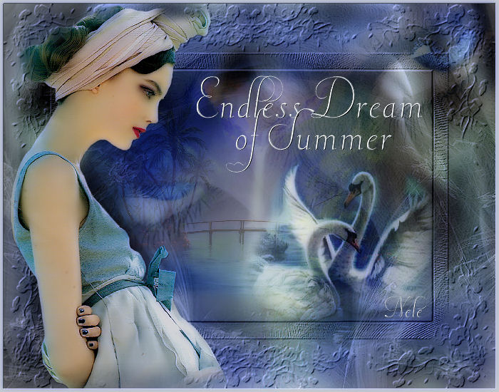 13. Beschrifte nun Dein Bild nach Belieben und vergiß auch Dein Wasserzeichen oder Deinen Namenszug nicht. Auf die Beschriftung meines Bildes habe ich noch einmal den Filter Muras Seamless - Emboss at Alpha angewandt. 14. Fasse nun alle Ebenen zusammen (Ebenen - Einbinden - Alle zusammenfassen) und schon hast Du ein schönes Blend gebastelt. Ich hoffe, es hat Dir Spaß gemacht mein Tutorial nachzuarbeiten und Du schaust bald wieder auf meiner Seite vorbei. Hier habe ich noch eine andere Version für Euch: