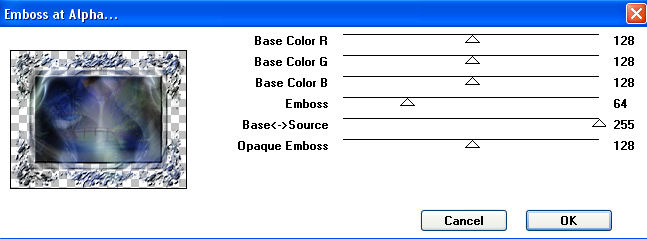 Ebenen - Einbinden - Gruppe zusammenfassen. 8. Wende den Filter Muras Seamless - Emboss at Alpha mit folgenden Einstellungen auf der Maskenebene an: