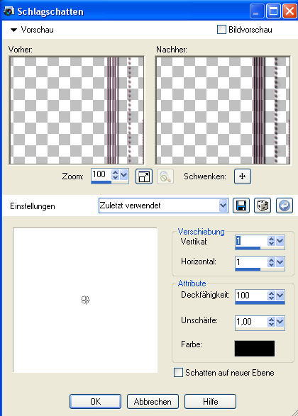 5. Ebenen - Einbinden - Gruppe zusammenfassen und wendet folgenden Schlagschatten an:
