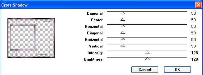 6. Wendet nun auf der Gruppenebene den Filter Graphics Plus - Cross Shadow mit folgenden Einstellungen an:
