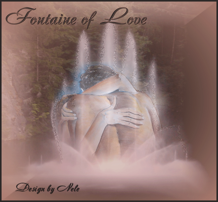 6. Aktiviere die Ebene Fontaine2 und wende wieder Bildrauschen an mit den gleichen Einstellungen. Gib aber nun 40% ein. 7. Aktiviere die Ebene Fontaine3 und wende wieder Bildrauschen an, diesmal mit dem Wert 50%. Hebe die Auswahl auf. 8. Kopiere das Tube " nikita_couples_1206812389.pspimage" oder Deine eigene Paartube und füge sie als neue Ebene auf Deinem Bild ein. Wenn Du die beigelegte Tube verwendest, dann verkleinere sie auf 80% (Größe aller Ebenen anpassen nicht angehakt). Verschiebe sie auf/in Deine Fontaine. Setze die Deckfähigkeit der Tube im Ebenenmanager auf 40% herunter. 9. Ebenen - Neue Rasterebene und Auswahl - Alles auswählen. Fülle die Auswahl mit Deiner Hintergrundfarbe. 10. Auswahl - Ändern - Verkleinern - um 5 Pixel und drücke einmal die Entf-Taste auf Deiner Tastatur. Hebe die Auswahl auf. 11. Setze nun Deinen Schriftzug auf´s Bild und vergiß Deinen Namen oder Dein Wasserzeichen nicht. 12. Mache die Ebenen Fontaine2 und Fontaine 3 unsichtbar indem Du im Ebenenmanager auf das Auge klickst. Bearbeiten - Inhalte kopieren - Alle Ebenen kopieren (Kopieren/alle Ebenen) und füge die Ebenen im Animationsshop als neue Animation ein. 13. Gehe zurück zu PSP und mache die Ebene Fontaine1 unsichtbar und die Ebene Fontaine2 sichtbar. Bearbeiten - Inhalte kopieren - Alle Ebenen kopieren und füge die Ebenen im Anishop nach dem aktuell ausgewählten Einzelbild ein. 14. Zurück zu PSP und mache die Ebene Foantaine2 unsichtbar und die Ebene Fontaine3 sichtbar. Bearbeiten - Inhalte kopieren - Alle Ebenen kopieren und füge die Ebenen im Anishop nach dem aktuell ausgewählten Einzelbild ein. 15. Zurück zu PSP und mache nun die Ebene Fontaine3 unsichtbar und die Ebene Fontaine1 sichtbar. Bearbeiten - Inhalte kopieren - Alle Ebenen kopieren und füge sie im Snishop nach dem aktuell ausgewählten Einzelbild ein. 16. Zurück zu PSP und mache die Ebene Fonataine1 unsichtbar und die Ebene Fontaine2 sichtbar. Bearbeiten - Inhalte kopieren - Alle Ebenen kopieren und füge die Ebenen im Anishop nach dem aktuell ausgewählten Einzelbild ein. 17. Du hast nun 5 Einzelbilder im Anishop. Klicke in den grauen Rand Deines ersten Einzelbildes und gehe auf Bearbeiten - Alle auswählen. 18. Animation - Einzelbildeigenschaften - setze die Wiedergabezeit auf 30 und fertig ist Deine FONTAINE DER LIEBE! Ich hoffe Du hattest Spaß beim Nachbasteln dieses Tutorials und schaust bald wieder auf meiner Seite vorbei.