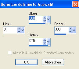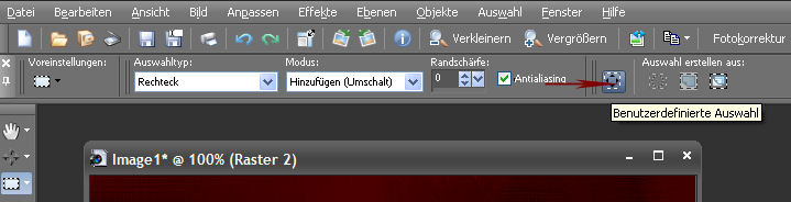 Dieses Tutorial ist von mir entworfen und unterliegt meinem Copyright. Das Material stammt aus Tauschgruppen und das Copyright liegt beim jeweiligen Künstler. Das Tutorial wurde von mir mit Paint Shop Pro X2 geschrieben, es läßt sich aber auch mit jeder anderen Version problemlos nachbasteln. Du benötigst Paint Shop Pro Tuben: 1 Stilleben oder Decotube 1 Gesichtstube 1 Textur Filter: Graphics Plus - Cross Shadow Filters Unlimited - Button & Frames - Rectangular Button Mein Material kannst Du Dir hier herunterladen. Hast Du alles zusammen? Dann lass uns beginnen! 1. Öffne Dir ein neues transparentes Arbeitsblatt in 550 x 650 Pixel Größe. 2. Suche Dir aus Deinen Tuben eine hellere Vordergrundfarbe (meine ist #fb1c11) und eine dunkle Hintergrundfarbe (meine ist #000000). 3. Fülle Dein Blatt mit Deiner Vordergrundfarbe und lege Dir eine neue Rasterebene an. Auswahl - Alles auswählen. Kopiere Dir die Textur "gh_texture_05.jpg" oder Deine eigene Textur und füge sie in eine Auswahl auf Deinem Bild ein. Hebe die Auswahl auf und stelle diese Ebenen im Ebenenmanager auf den Mischmodus "Mutiplikation". Gehe auf Effekte - Kanteneffekte - stark nachzeichnen. 4. Lege Dir eine neue Rasterebene an und aktiviere Dein Auswahlwerkzeug und dort auf Benutzerdefinierte Auswahl: