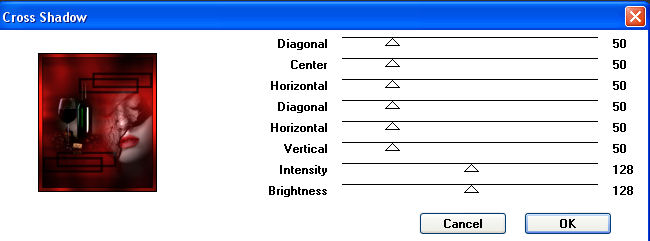Als Bandfarbe Eure Vordergrundfarbe, als Lückenfarbe schwarz oder Eure dunkle Hintergrundfarbe. 11. Lasst die Auswahl bestehen und wendet den Filter Graphics Plus - Cross Shadow mit folgenden Einstellungen an: