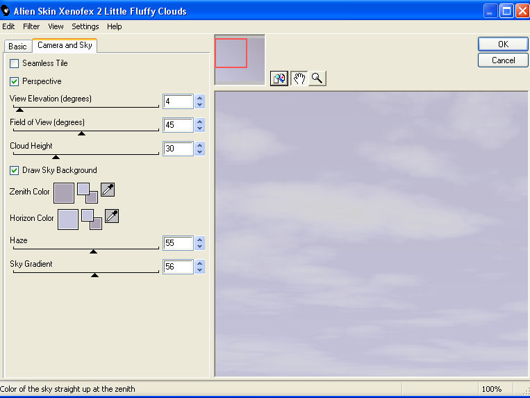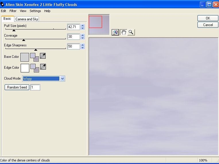 und füllt Eure Ebene mit dem Verlauf. 3. Dupliziert diese Ebene nun 2 mal und benennt diese drei Ebenen um in: wolken 1 wolken 2 wolken 3 4. Wendet nun auf der Ebene wolken 1 den Filter Alien Skin Xenofex 2 - Little Fluffy Clouds mit folgenden Einstellungen an: bei Basics