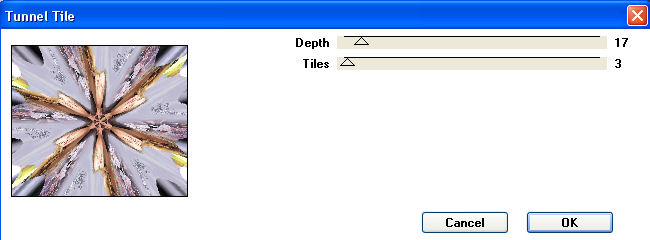 Den selben Schlagschatten nochmal mit Minuswerten bei Vertikal und Horizontal anwenden. 18.Geht nun auf die unterste Ebene und wendet dort den Filter Funhouse - Tunnel Tile mit diesen Einstellungen an: