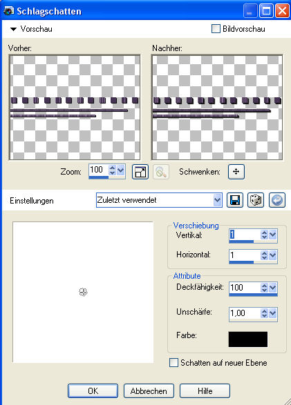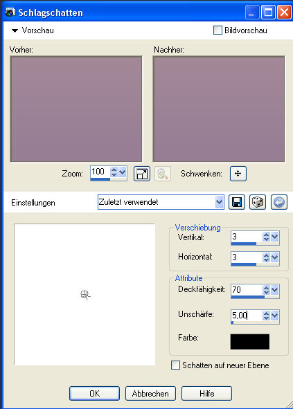 Hebe die Auswahl auf. 19. Verschiebe nun diese Auswahl an eine Stelle die Dir gefällt und wende folgenden Schlagschatten an: