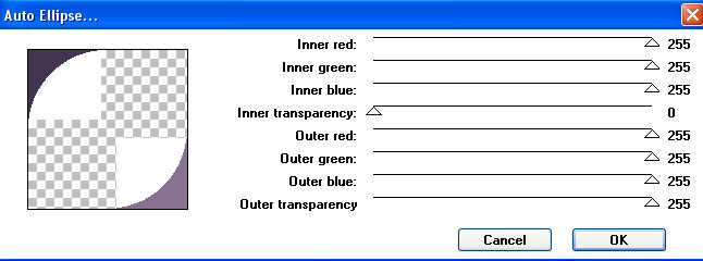 Fülle das erste Auswahlkästchen nun mit Deiner dunkleren Hintergrundfarbe und das untere Auswahlkästchen mit Deiner helleren Vordergrundfarbe. Wende nun den Filter Filter Factory Gallery V - Auto Ellipse mit folgenden Einstellungen an: