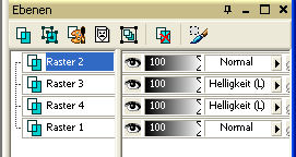 7. Aktiviere wieder die oberste Ebene. So wie auf dem Screen müßte nun Dein Ebenenmanager aussehen: