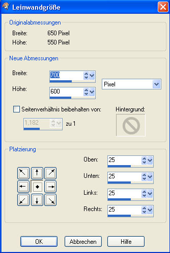 10. Gehe auf unterste Ebene (Raster 1) Bild - Leinwandgröße mit den Einstellungen vom Screen: