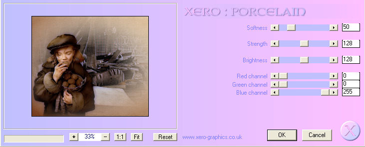 7. Fasse nun alle Ebenen zusammen und wende den Filter Xero - Porcelain mit folgenden Einstellungen an: