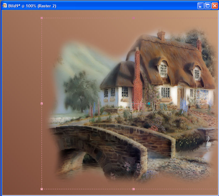 15. Kopiere nun das Tube "Marif_2006_septembre_misted_paysage05.psp" und füge es als neue Ebene auf Deinem Bild ein. Verschiebe es so, dass Du saubere Übergänge zu Deinem anderen Tube hast, dazu mußt Du es gegebenenfalls auch mit dem Rasterverfomungswerkzeug etwas auseinanderziehen. 16. Ebenen - Einbinden - Alle zusammenfassen und wende nun den Filter Unlimited 2.0 mit den gleichen Einstellungen an wie in Schritt 5: