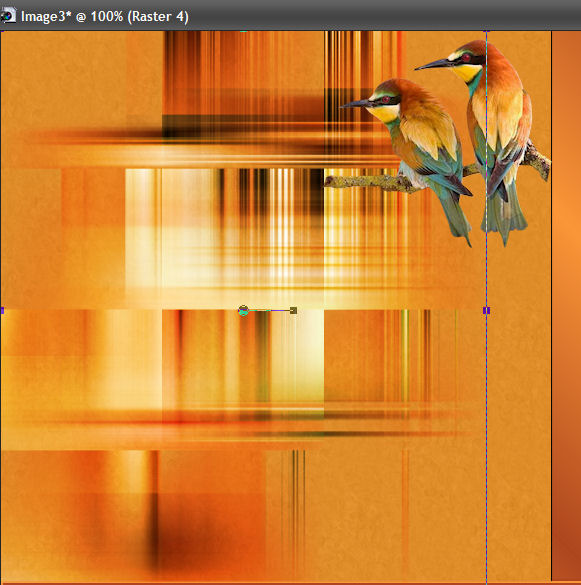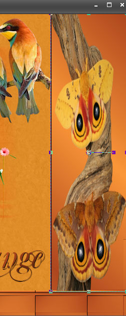 14. Bleibe auf der Ebenen und füge Deine Gesichtstube nochmal als neue Ebenen auf Deinem Bild ein und verschiebe sie nach unten und links an den Rand. 15. Schreibe nun Deinen Text in einer schönen Schrift als oberste Ebene auf Dein Bild und vergiß Dein Wasserzeichen nicht. 16. Fasse nun alle Ebenen sichtbar zusammen. 17. Nun wollen wir uns um unsere Animation kümmern. Dazu kopiere Dir das Tube "@nn_270707_bug138_double_tdstudio_small.pspimage" oder Dein eigenes Schmetterlingstube und füge es als neue Ebenen auf Deinem Bild ein. Verziehe es mittels Objektauswahlwerkzeug (Rasterverformungswerkzeug) so, dass es genau in Deinen rechten Rand passt: