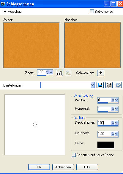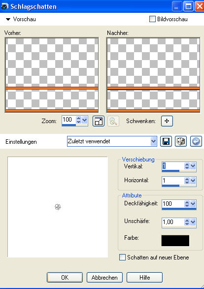 11. Gehe nun auf Deine oberste Ebene und wende dort diesen Schlagschatten an: