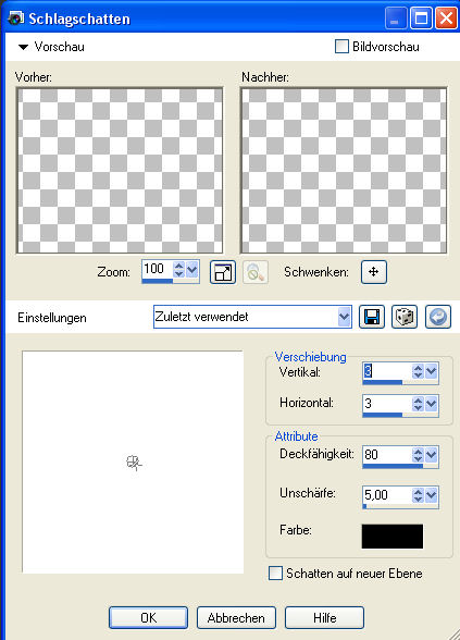 Effekte - 3D-Effekte - Schlagschatten mit diesen Einstellungen:
