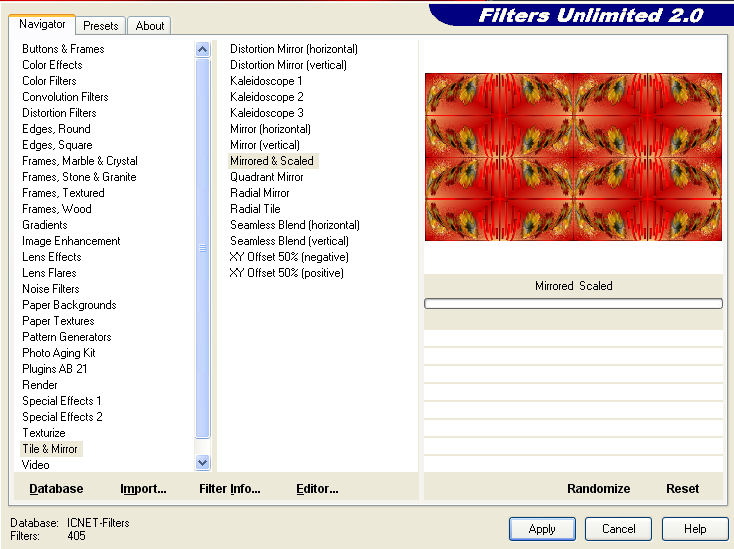 und auch noch einmal mit Minuswerten bei Vertikal und Horizontal. 11. Geht auf die untere Ebene und wendet dort den Filter Unlimited Tile & Mirror - Mirrored & Scaled an: