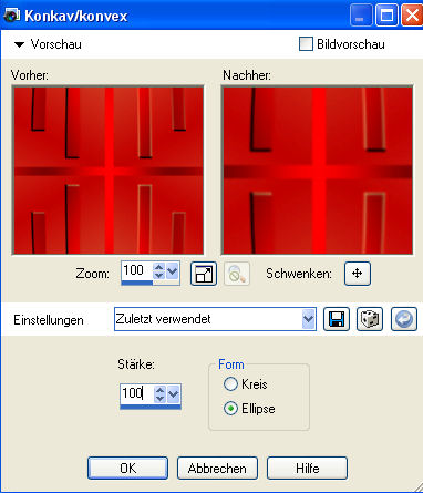 Nun geht auf Effekte - Geometrieeffekte - Konkav/konvex mit diesen Einstellungen: