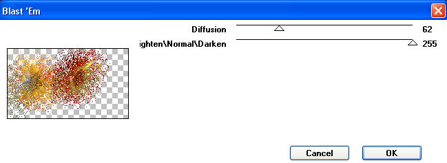 und füllt Euer Blatt damit. 4. Kopiert das Tube "Image44DanceoftheGerbera_LR.pspimage" oder Euer eigenes Blumentube und fügt es als neue Ebene auf Eurem Blatt ein (wenn Ihr das beigelegte Blumentube verwendet, dann ändert die Größe auf 85% - Größe aller Ebenen anpassen nicht angehakt). Schiebt es nach unten und links an den Rand. Wendet den Filter Factorys Gallery G - Blast `Em wie folgt an:
