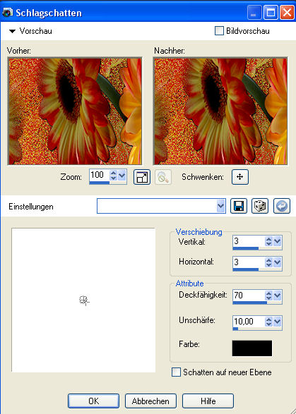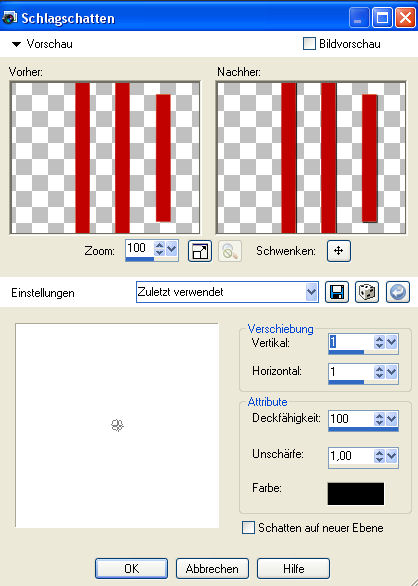 und wandelt die Vektorebene in eine Rasterebene um. Wendet diesen Schlagschatten an: