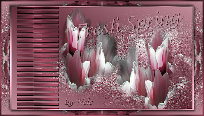 12. Legt Euch eine neue Rasterebene an und füllt diese mit Eurer Vordergrundfarbe. Auswahl - Alles auswählen - Ändern - Verkleinern - um 5 Pixel und drückt einmal die Entf-Taste. Hebt die Auswahl auf und markiert Euch mit dem Zauberstab den hellen Rand. Wendet auf diese Auswahl den Filter Graphics Plus - Cross Shadow mit den Einstellungen aus Punkt 9 an und hebt die Auswahl auf. 13. Beschriftet Euer Bild auf oberster Ebene mit einem schönen Schriftzug und vergesst auch Euren Namen oder Euer Wasserzeichen nicht. 14. Fasst alle Ebenen zusammen und speichert Euer Bild als jpg ab. Fertig ist Euer frisches Frühlingsbild. Hier habe ich auch noch eine andere Version für Euch gebastelt: