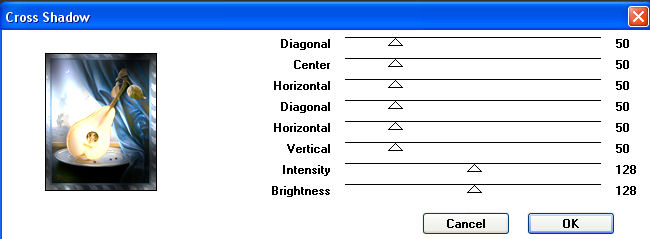 Effekte - Kanteneffekte - Nachzeichnen. 9. Laßt die Auswahl noch bestehen und wendet den Filter Graphics Plus - Cross Shadow mit den Standarteinstellungen an: