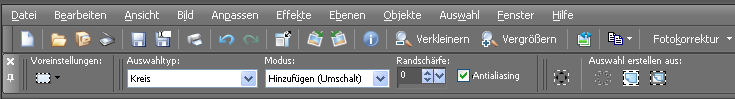 Hebe die Auswahl auf. 8. Setze nun einen schönen Schriftzug auf Dein Bild und vergiß auch Dein Wasserzeichen oder Deinen Namenszug nicht. 9. Aktiviere jetzt Deine Ebene mit der Planetentube und ziehe mit Deinem Auswahlwerkzeug "Kreis" mit diesen Einstellungen: