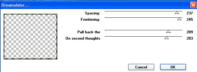 Fülle Deine Auswahl mit diesem Farbverlauf. 8. Auswahl - Ändern - Verkleinern - um 5 Pixel und drücke einmal die Entf-Taste auf Deiner Tastatur. Auswahl - Umkehren 9. Wende den Filter Two Moon - Dreamulator mit folgenden Einstellungen an: