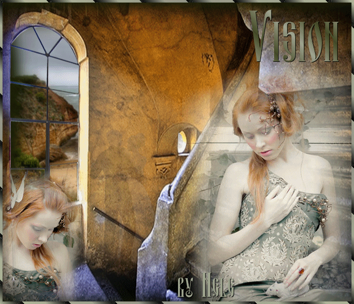Hebe die Auswahl auf. 10. Beschrifte Dein Bild nu und vergiß auch Deinen Namenszug oder Dein Wasserzeichen nicht. 11. Fasse alle Ebenen sichtbar zusammen. Bearbeiten - Kopieren und im Anishop als neue Animation einfügen. 12. Dupliziere Dein Bild im Anishop bis Du 8 Einzelbilder hast. Klicke in den Rand des 1. Einzelbildes und gehe auf Bearbeiten - Alle auswählen. 13. Öffne im Anishop die Animation "dancers.psp" oder Deine eigene Animation. Klicke auch hier in den Rand des 1. Einzelbildes - Bearbeiten - Alle auswählen und ziehe die Animation nun mit gedrückter linker Maustaste auf das das erste Einzelbild Deines Bildes. Wenn Du die Animation an der richtigen Stelle hast lasse die Maustaste los. 14. Animation - Einzelbildeigenschaften und stelle hier die Wiedergabezeit auf 30 ein. Speichere Dein Bild als gif ab und Deine VISION ist fertig. Ich hoffe es hat Dir Spaß gemacht dieses Tutorial nachzubasteln und Du schaust bald wieder auf meiner Seite vorbei.