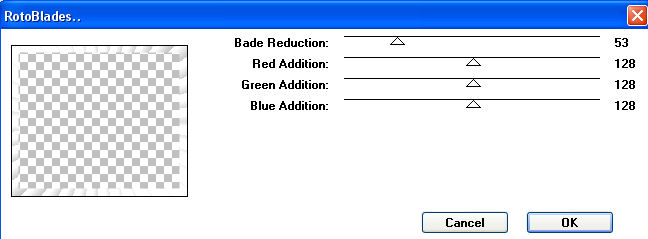 6. Lege eine neue Rasterebene an und fülle diese mit dem eben erstellten Farbverlauf. Verschiebe diese Ebene an unterste Stelle im Ebenenmanager. 7. Wende den Filter Two Moon - RotoBlades mit diesen Einstellungen an: