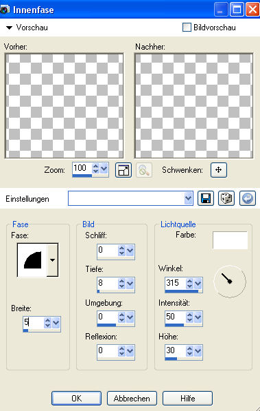 14. Effekte - 3D-Effekte - Innenfase mit diesen Einstellungen: