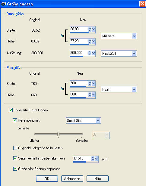 18. Beschrifte nun Dein Bild und vergiß auch Dein Wasserzeichen oder Deinen Namenszug nicht. 19. Ich habe jetzt noch einen Brush mitten auf mein Bild gesetzt... dies müßt Ihr nun selbst entscheiden ob Euch das gefällt. Probiert einfach ein bissle. 20. Fasse alle Ebenen zusammen und gehe auf Bild - Größe ändern - stell hier von Prozent auf Pixel um und ändere die Breite auf 700 Pixel (Größe aller Ebenen anpassen ist diesmal angehakt):