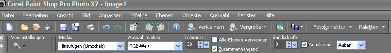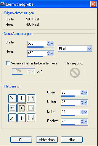 und hebe die Auswahl auf. 17. Bearbeiten - Kopieren.... Dein Bild ist nun in der Zwischenablage. 18. Bild - Leinwandgröße mit folgenden Einstellungen: